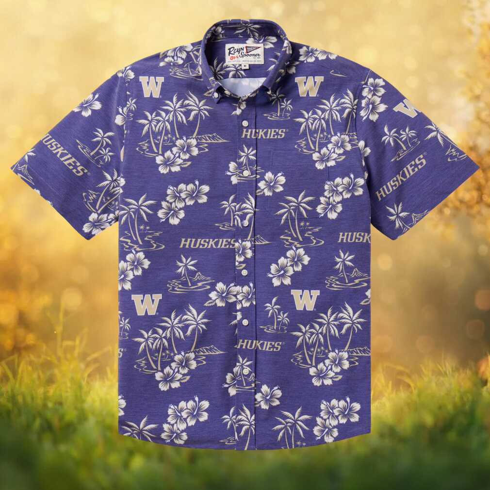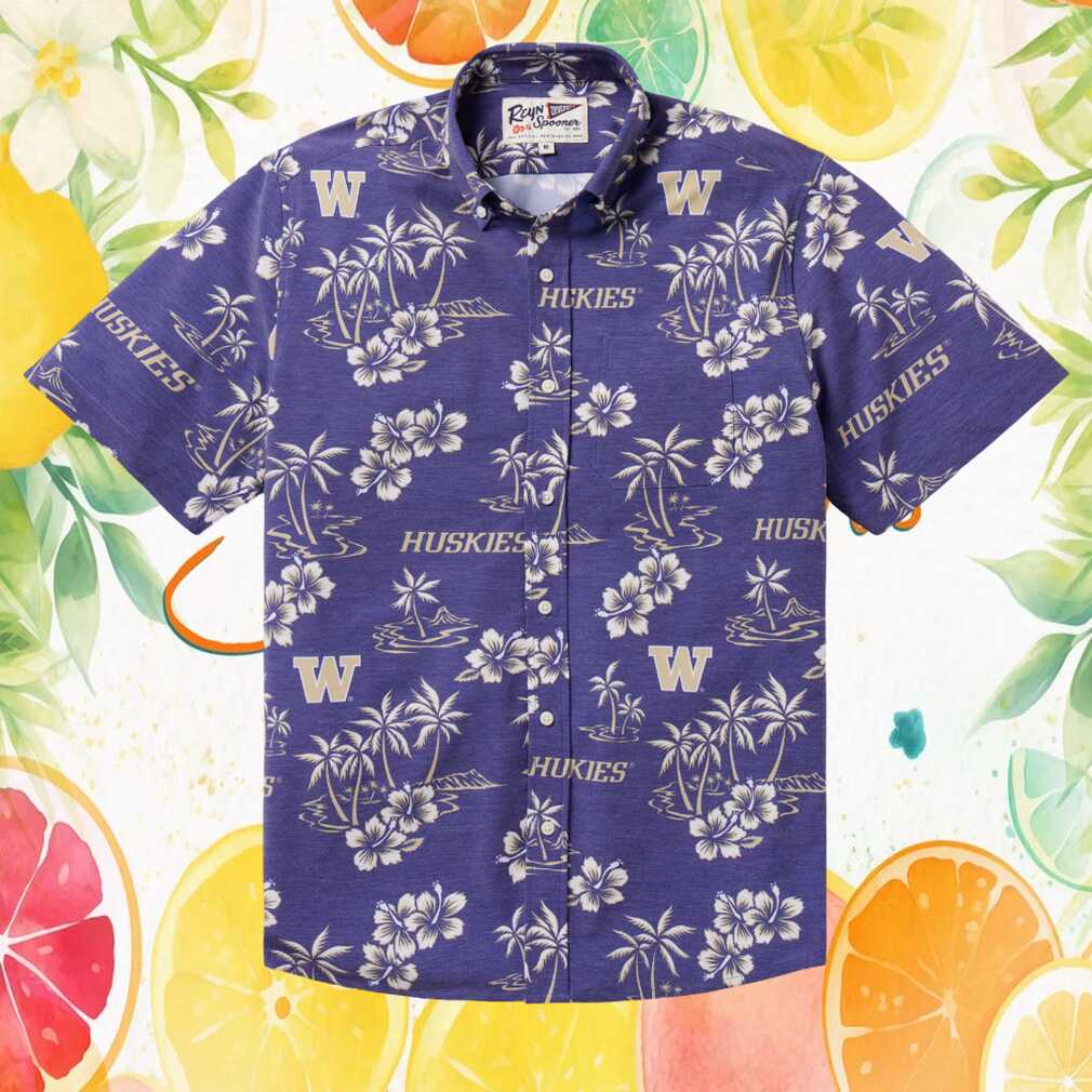 Reyn Spooner Washington Huskies Hawaiian Shirt Purple W Logo Tropical Button Down