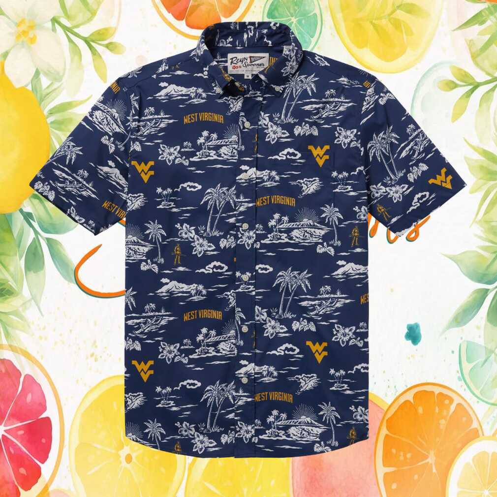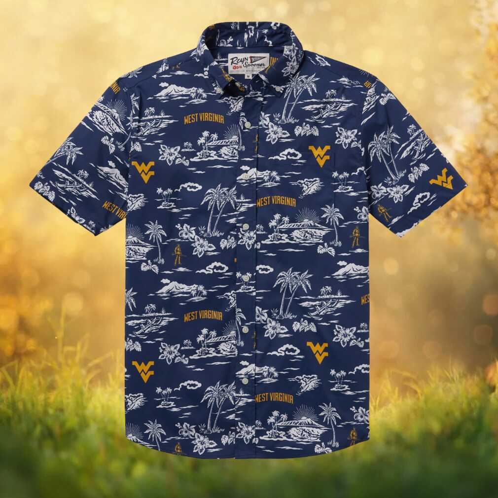 Rep your team in style with this officially licensed Reyn Spooner West Virginia Mountaineers Hawaiian shirt. Featuring a stunning scenic/stadium print in multi-color, this button-down shirt blends authentic Hawaiian craftsmanship with passionate NCAA fan spirit. Crafted from premium spoiler cloth for a comfortable, relaxed fit perfect for game days, tailgates, vacations, or any casual occasion. A must-have for any die-hard fan.