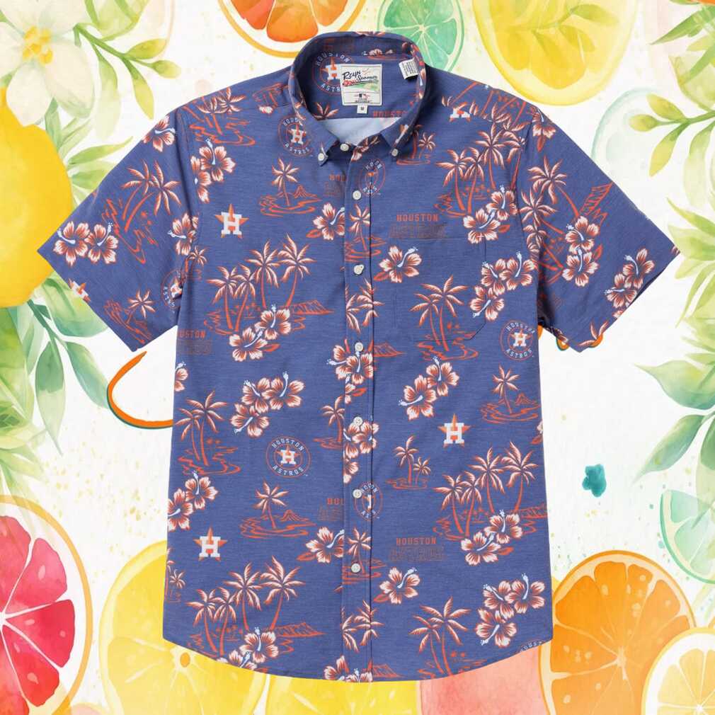 Reyn Spooner x MLB Houston Astros Blue Star & Hibiscus Print Button Up Hawaiian Shirt