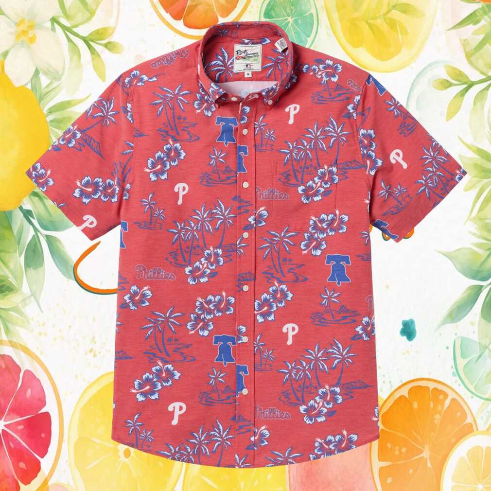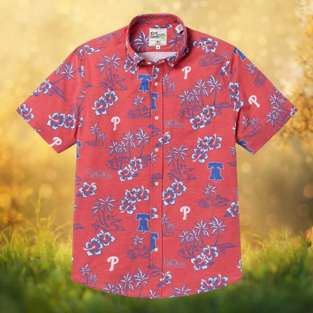 Rep your team in style with this officially licensed Reyn Spooner Philadelphia Phillies Hawaiian shirt. Featuring a stunning hibiscus floral print in red, this button-down shirt blends authentic Hawaiian craftsmanship with passionate MLB fan spirit. Crafted from premium spoiler cloth for a comfortable, relaxed fit perfect for game days, tailgates, vacations, or any casual occasion. A must-have for any die-hard fan.