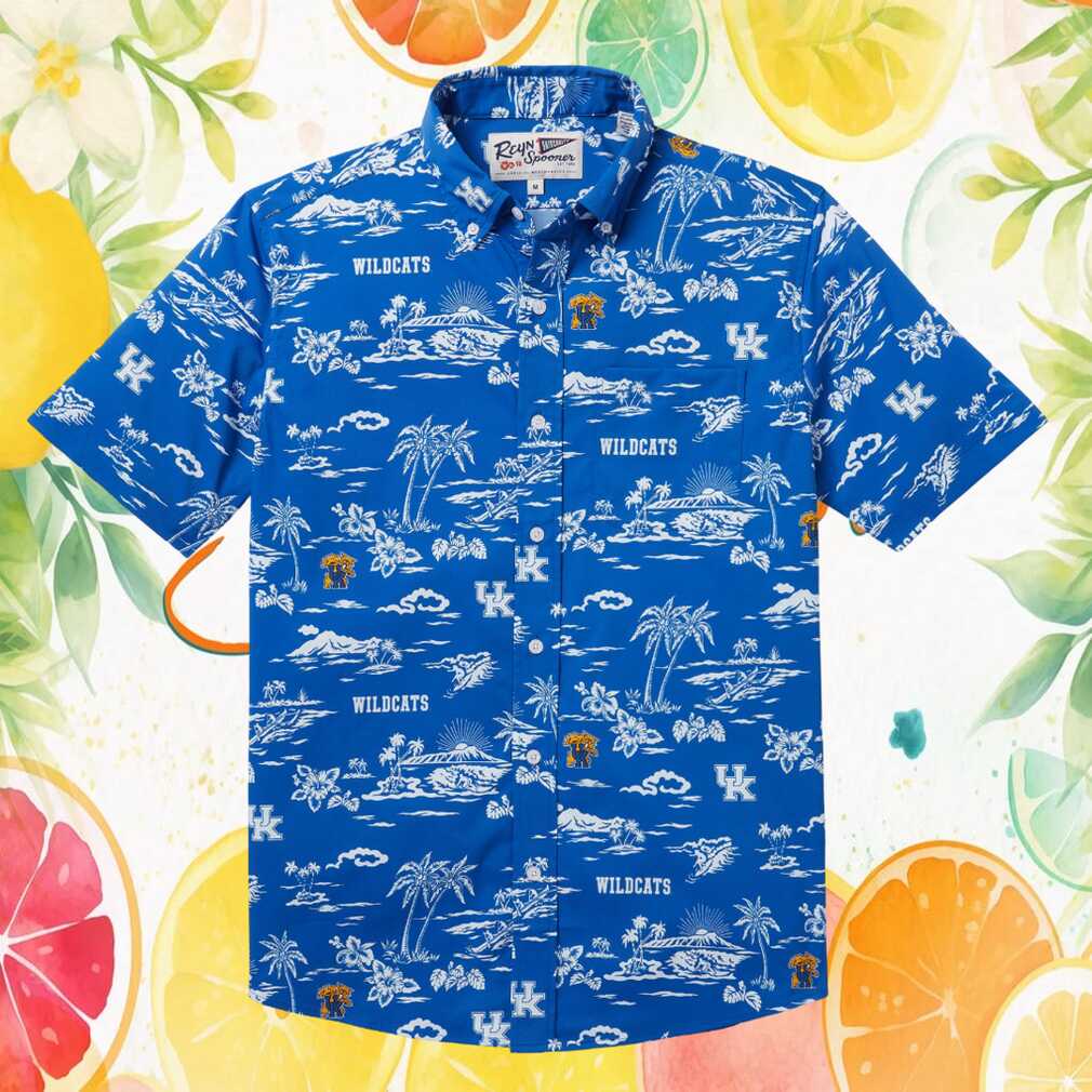 Rep your team in style with this officially licensed Reyn Spooner Kentucky Wildcats Hawaiian shirt. Featuring a stunning tropical print in blue, this button-down shirt blends authentic Hawaiian craftsmanship with passionate NCAA fan spirit. Crafted from premium spoiler cloth for a comfortable, relaxed fit perfect for game days, tailgates, vacations, or any casual occasion. A must-have for any die-hard fan.