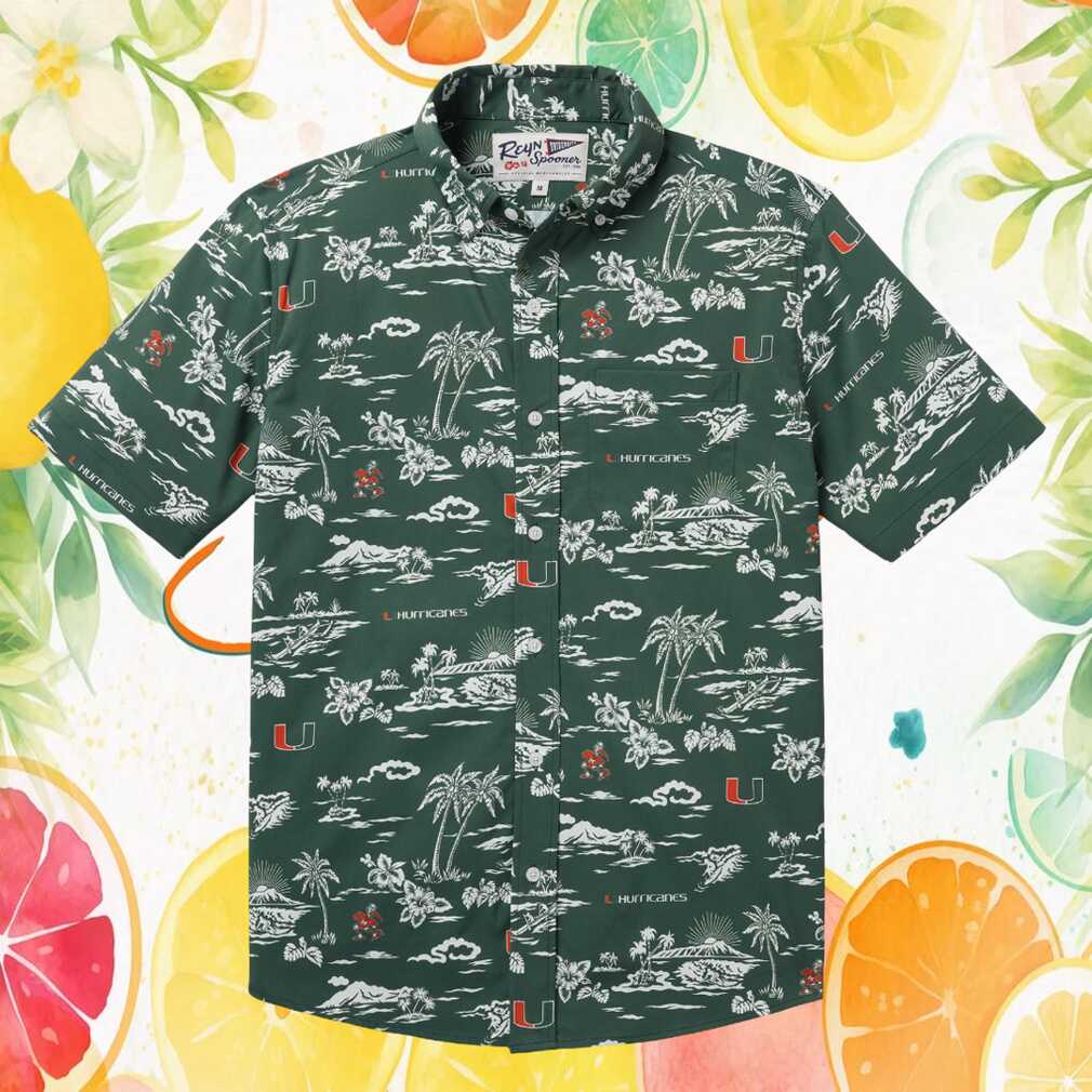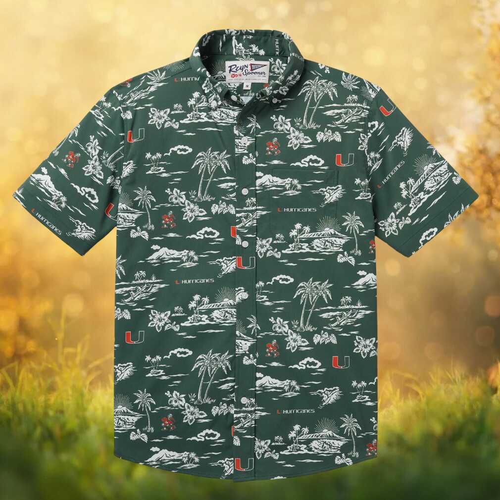 Rep your team in style with this officially licensed Reyn Spooner Miami Hurricanes Hawaiian shirt. Featuring a stunning tropical print in green, this button-down shirt blends authentic Hawaiian craftsmanship with passionate NCAA fan spirit. Crafted from premium spoiler cloth for a comfortable, relaxed fit perfect for game days, tailgates, vacations, or any casual occasion. A must-have for any die-hard fan.