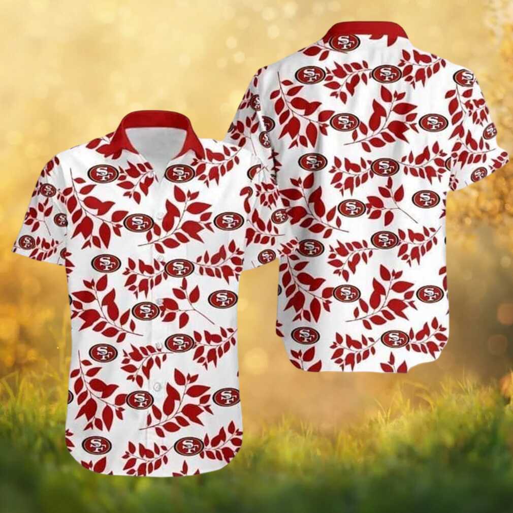 San Francisco 49ers Red Leaf Vine Pattern White Summer Button Down Hawaiian Shirt