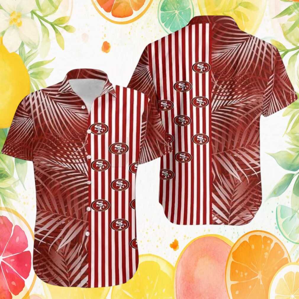 San Francisco 49ers Tropical Palm Leaf Vertical Stripe Hawaiian Shirt