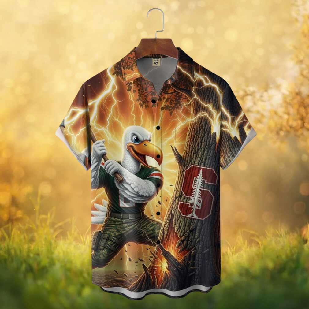 Stanford Cardinal Tree Mascot Lightning Woodcutter Action Tropical Hawaiian Shirt