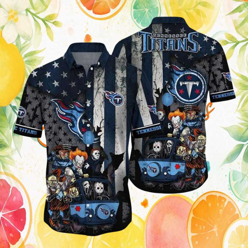 Tennessee Titans Horror Movie Characters Flag Mashup Hawaiian Shirt