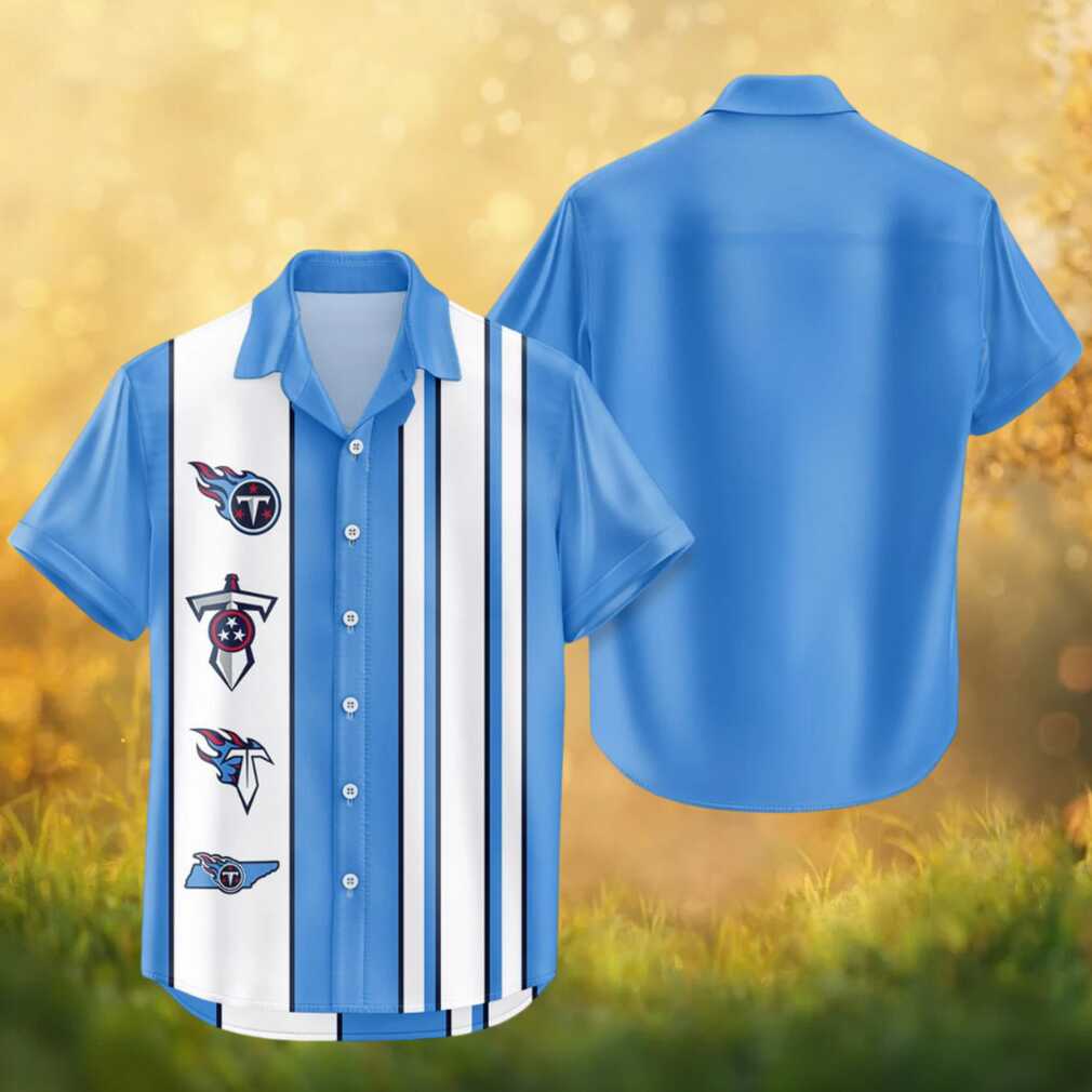 Classic heritage stripes in light blue give this Tennessee Titans Hawaiian shirt a timeless, retro feel that any longtime Titans fan will appreciate. Clean, understated, and perfect for everyday wear or relaxed game-day viewing.