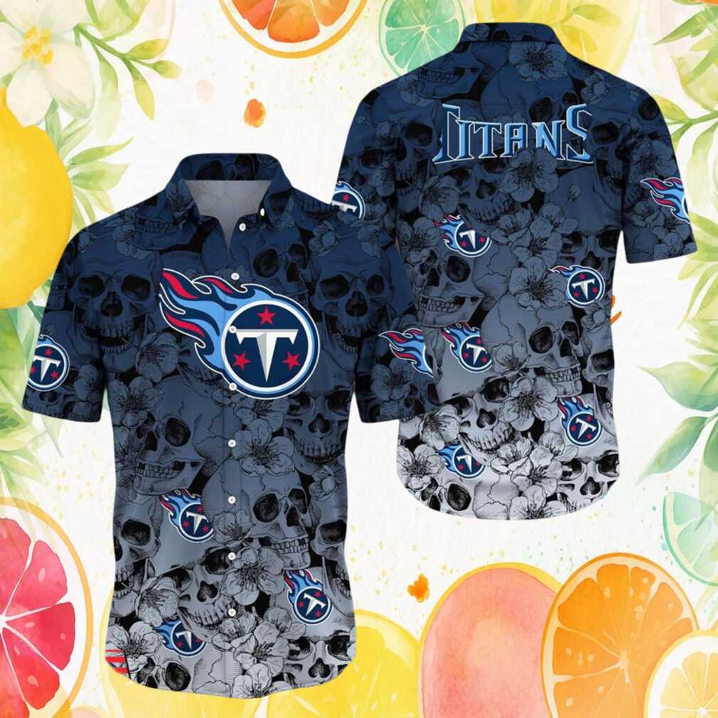 Tennessee Titans NFL Floral Skull Pattern Dark Navy Hawaiian Shirt