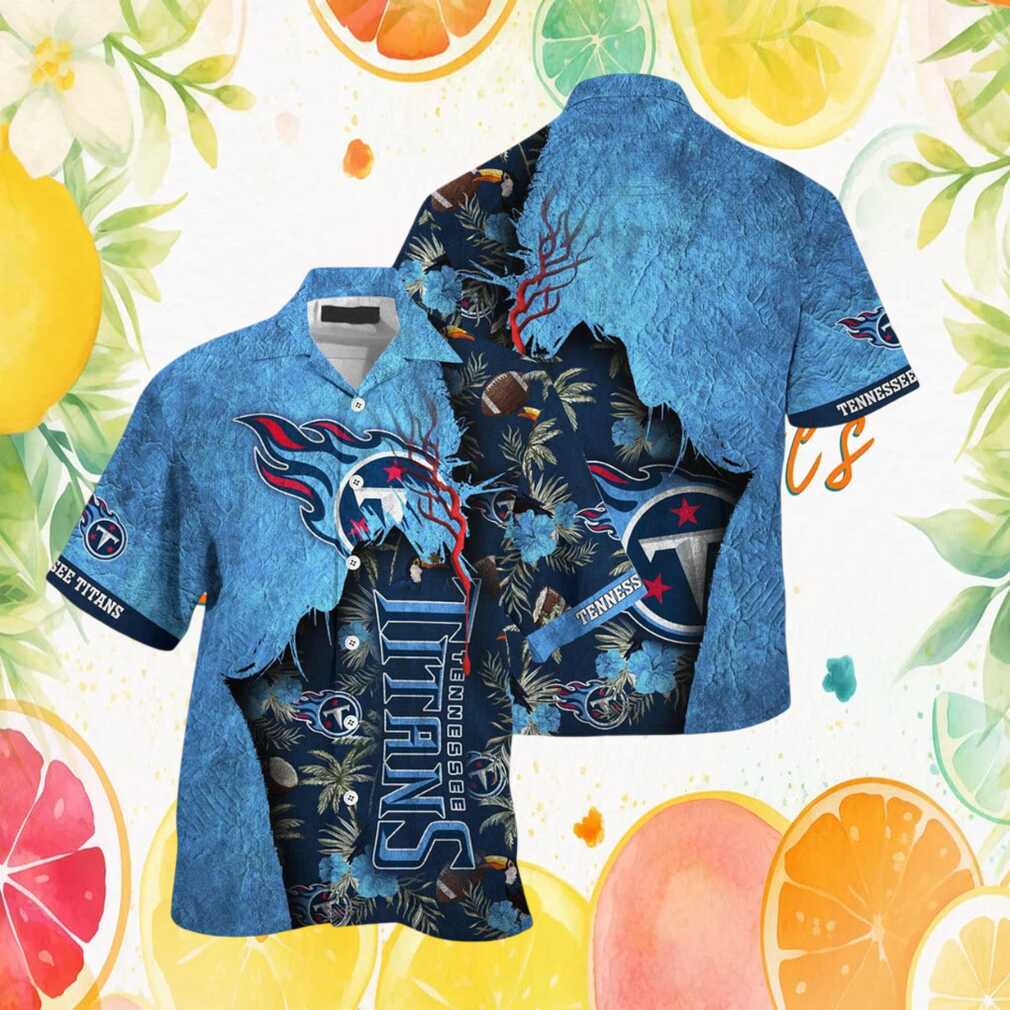 Tennessee Titans NFL Torn Rock & Tropical Floral Hawaiian Shirt