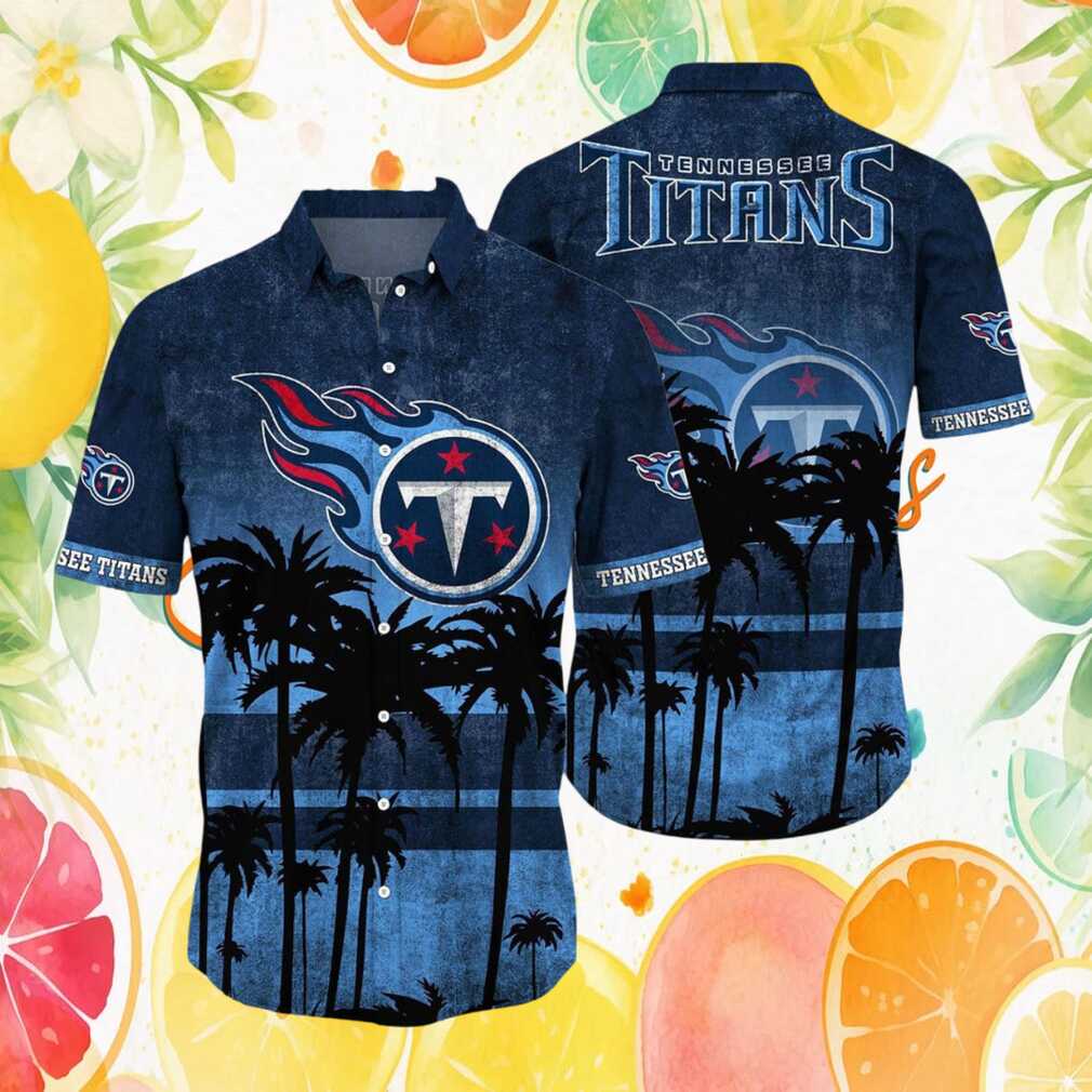 Tennessee Titans Vintage Sunset Palm Tree Silhouette Hawaiian Shirt
