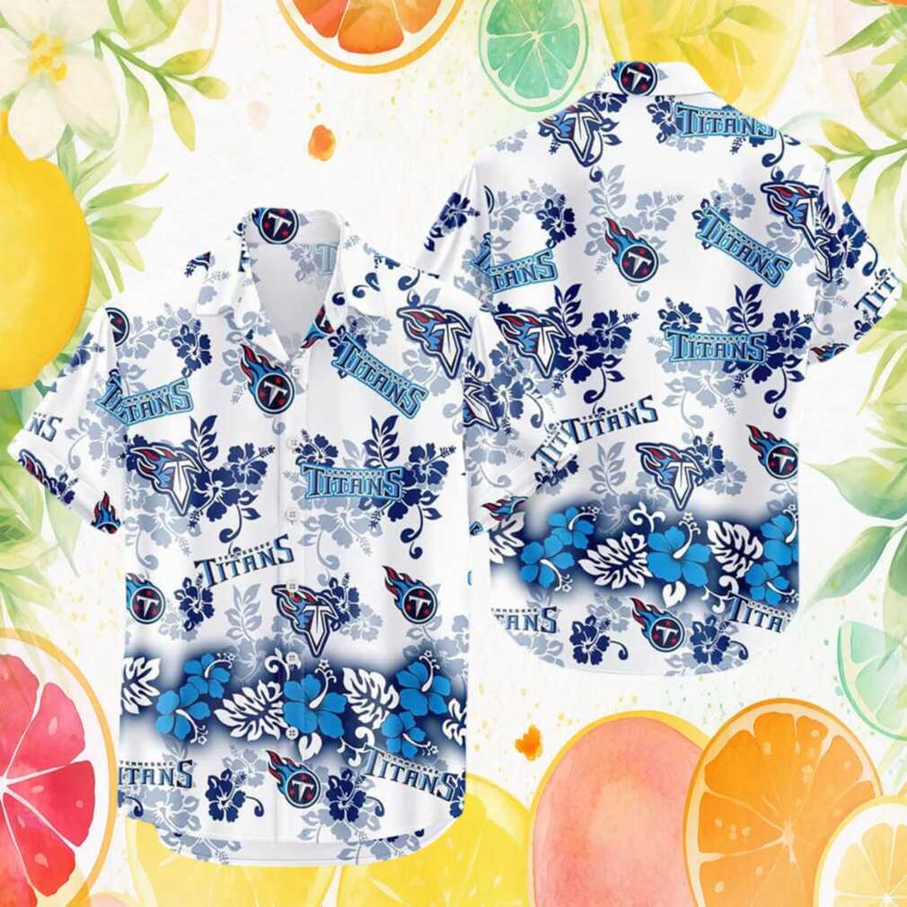 Tennessee Titans White & Blue Floral Hibiscus Print Hawaiian Shirt