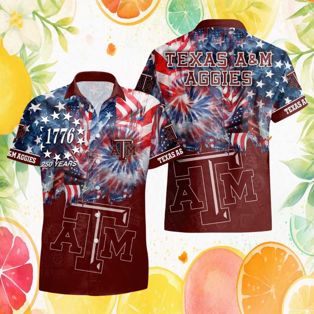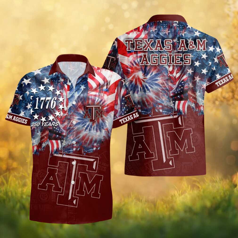 Texas A&M Aggies 1776 Patriotic 250 Years Anniversary Button Down Hawaiian Shirt