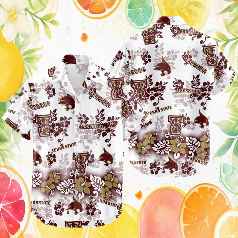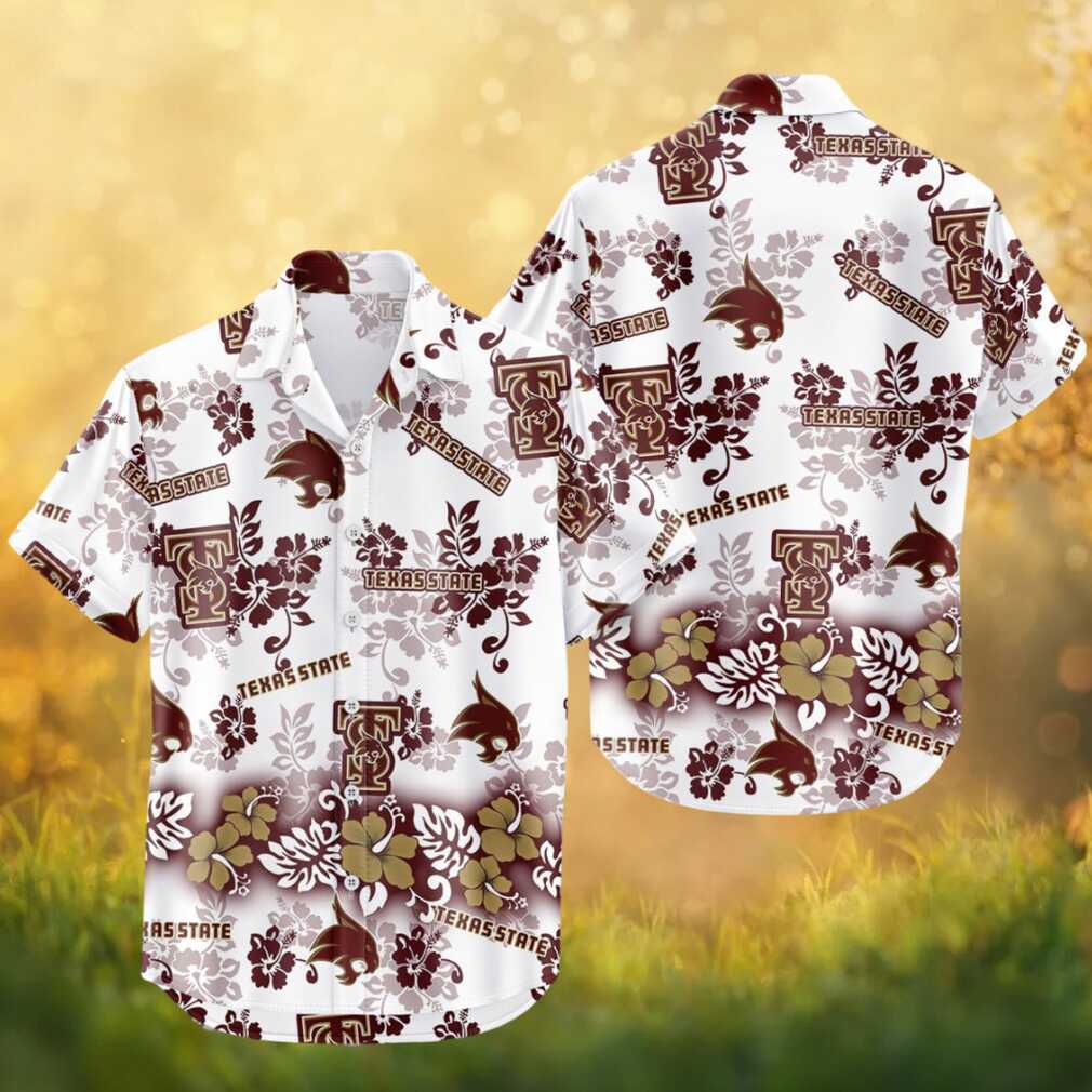 Show your Texas State Bobcats pride in style with this vibrant tropical Hawaiian shirt! Featuring lush hibiscus flowers, palm leaves, and Texas State Bobcats team logos woven into an all-over print in the team’s iconic maroon and gold color scheme. The lightweight button-down design with short sleeves makes it perfect for game days, tailgates, beach outings, and summer events. A fan-favorite piece of Texas State University spirit wear that lets you celebrate your team no matter where the season takes you!