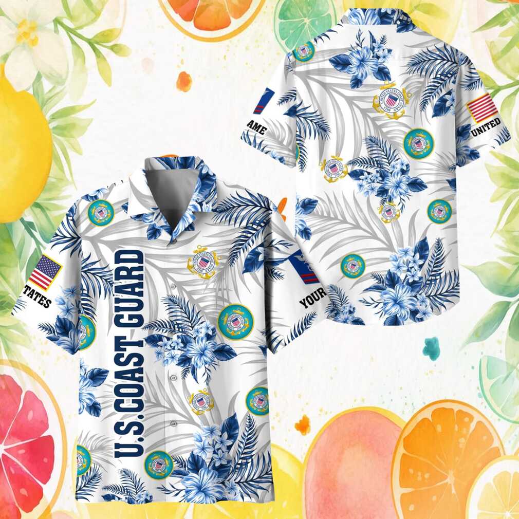 US Coast Guard Blue Tropical Hawaiian Shirt USCG Emblem Summer Beach Veteran Hawaiian Shirt.jfif