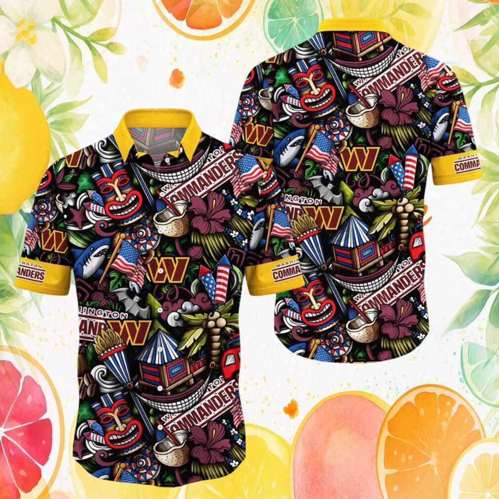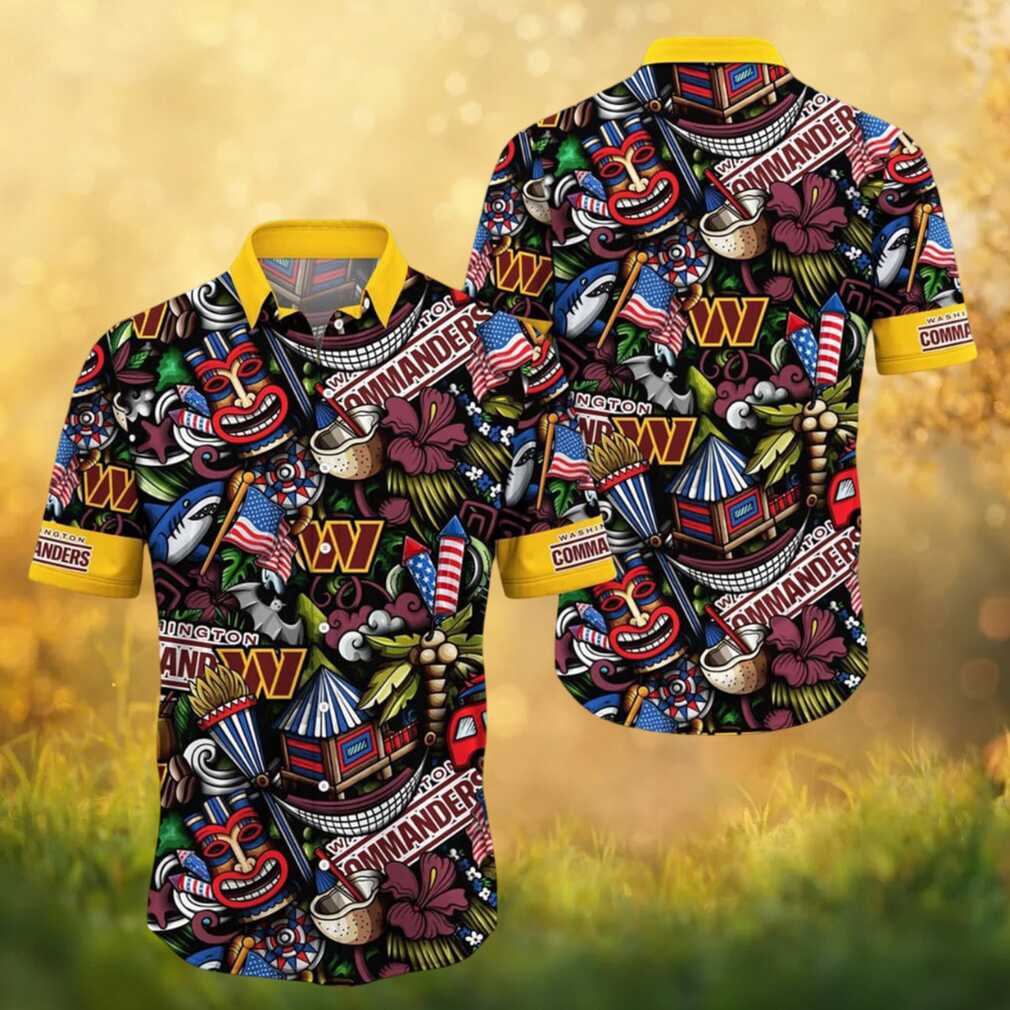 Show your Washington Commanders pride in style with this eye-catching Hawaiian shirt featuring patriotic American flag and fireworks designs blended with NFL team pride. Crafted from lightweight, breathable fabric with a comfortable button-up design and short sleeves, this shirt is perfect for Independence Day celebrations and gameday events. Available in a full range of sizes, it makes a fantastic gift for any Commanders fan.