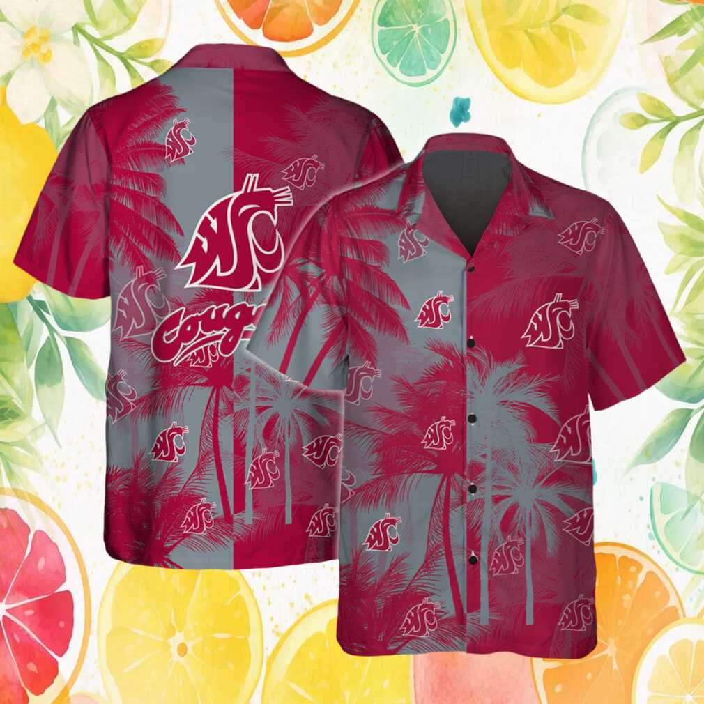 Washington State Cougars NCAA Crimson Gray Palm Hawaiian Shirt