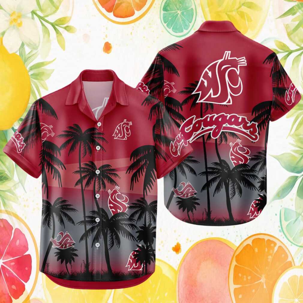 Washington State Cougars Tropical Palm Crimson Hawaiian Shirt